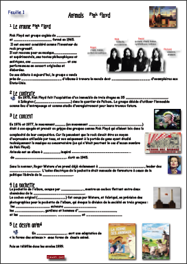 Animals des Pink Floyd ....Pink Floyd: Le rock progressif... L'album-concept... Le mouvement psychédélique ... La ferme des animaux, G. Orwell ... Le artwork et les groupes progressistes... le contexte: le studio de londres Britania row. La cocept: les punks, M.Thatcher ... La pochette: Agie, battersea power station... L'analyse musicale: la forme, le chiffrage... Les paroles: traduction et sens ... Le long métrage animé .... Le test... |